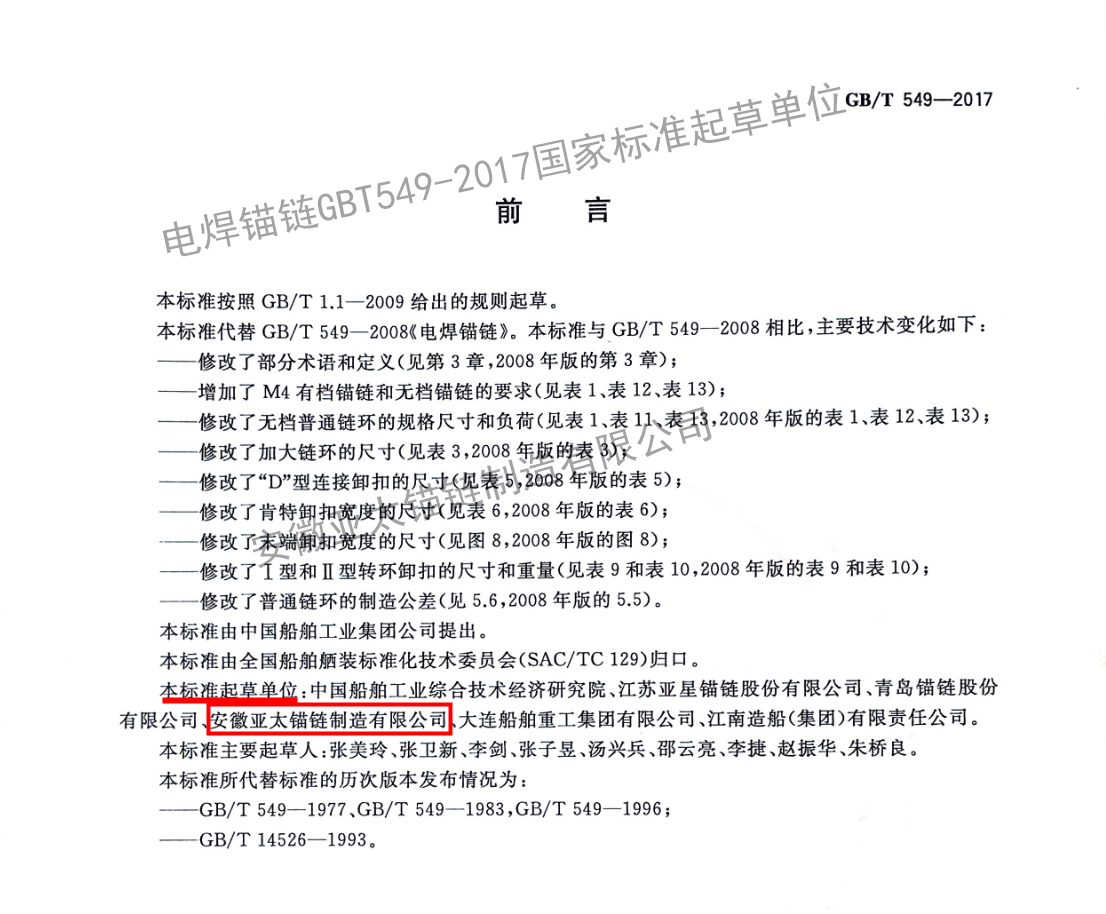 電焊錨鏈GBT549-2017國家標(biāo)準(zhǔn)起草單位